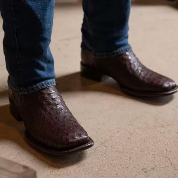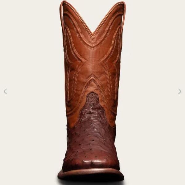 Our broad square toe boot in full-quill ostrich stuns. Features a two-tone shaft and vamp, double stitched welt, 1 " straight heel, and a 12" shaft with a new Tecovas original cording pattern. It's a classic square toe boot in our most popular exotic hide. The Emmitt is made for special occasions with an edge that is pure cowboy.