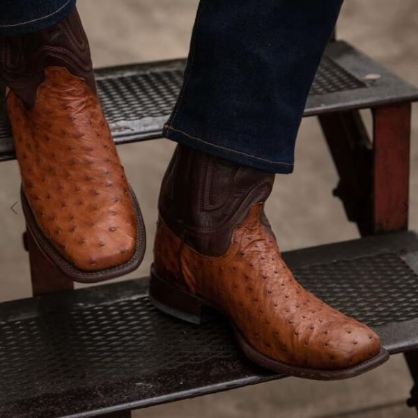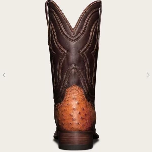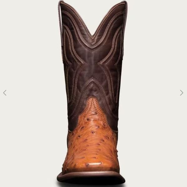 Our broad square toe boot in full-quill ostrich stuns. Features a two-tone shaft and vamp, double stitched welt, 1 " straight heel, and a 12" shaft with a new Tecovas original cording pattern. It's a classic square toe boot in our most popular exotic hide. The Emmitt is made for special occasions with an edge that is pure cowboy.