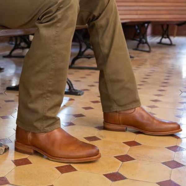 The Jake takes the practical versatility of our original roper and dresses it up for the elements. A full-length treaded Vibram rubber sole provides both grip and grit. The Jake's soft, water-resistant bovine leather wraps the entirety of the boot for protection from rain and muck, all while maintaining the clean lines of a dress boot. It makes for a comfort you'll want to put on every day.