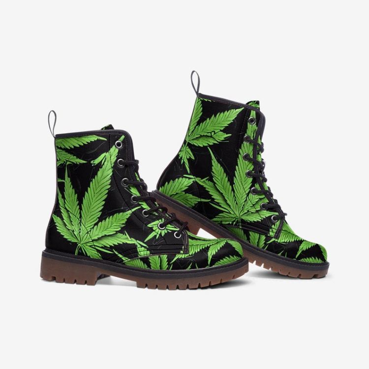 - Men's Unisex Fit Marijuana Green Leaf Black Casual Leather | Save More