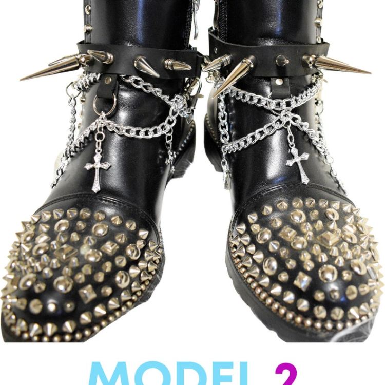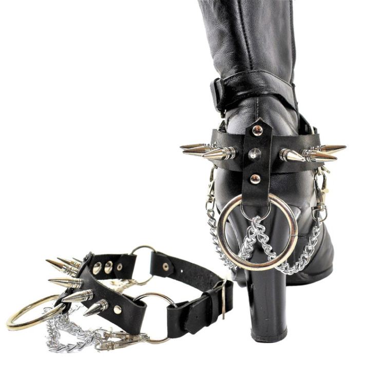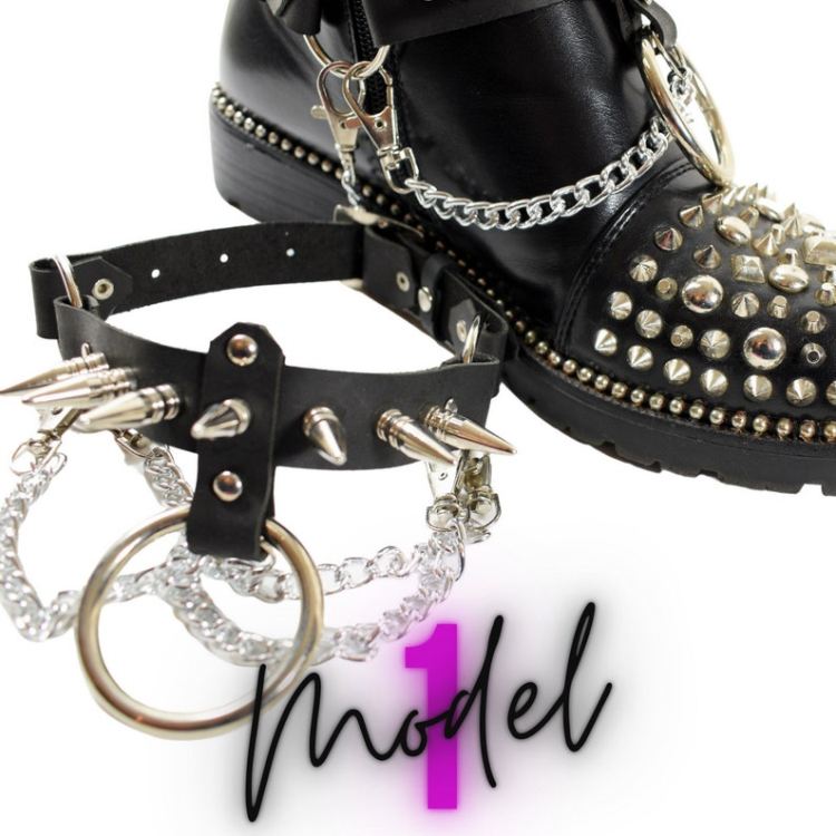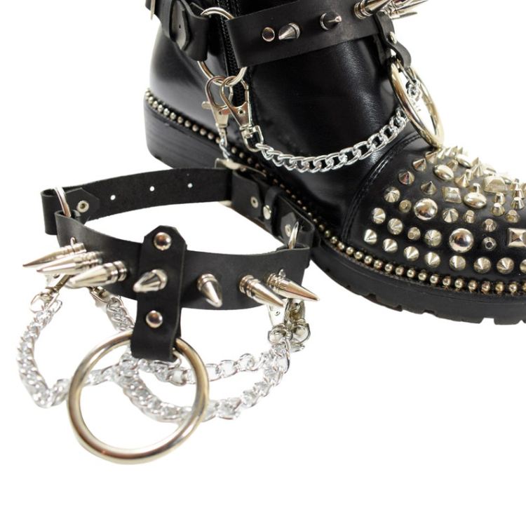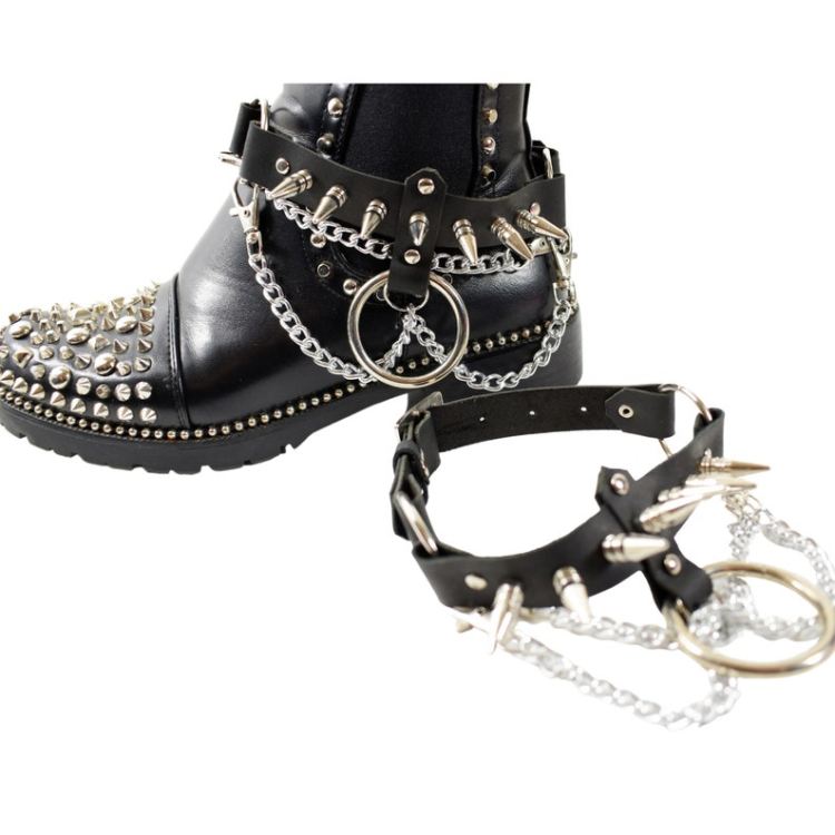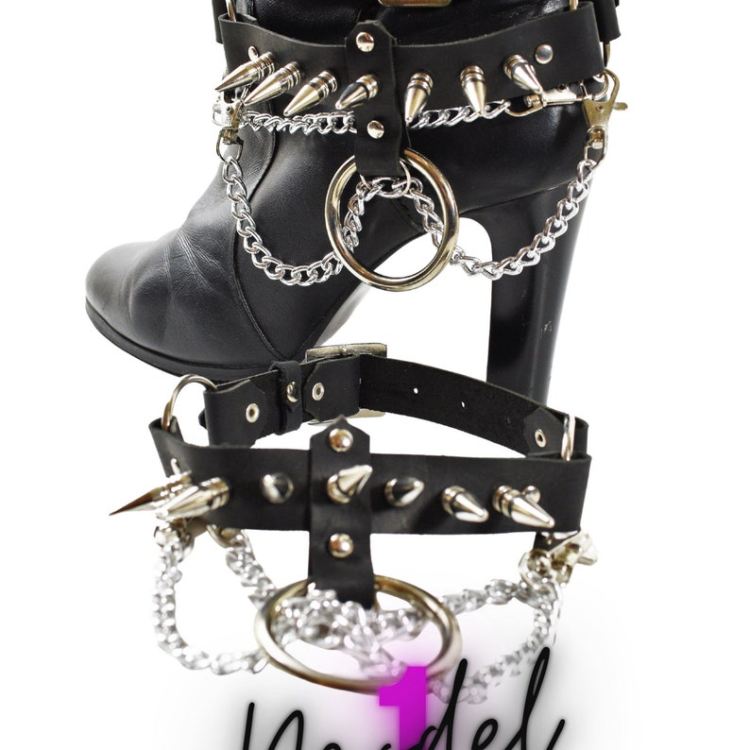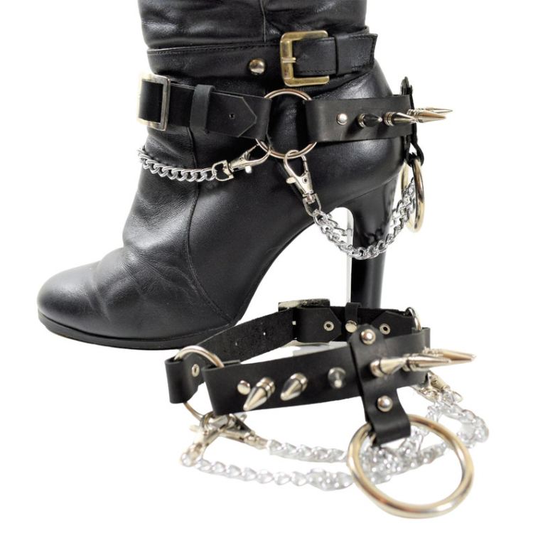 Leather Boot Straps with metal studs & chains