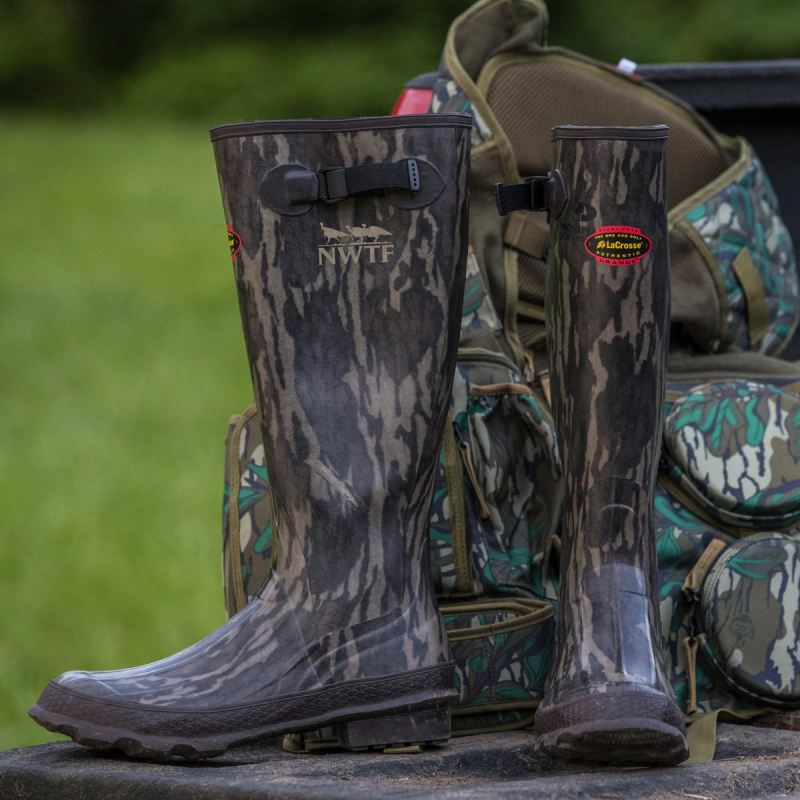 Waterproof, durable and comfortable-the Grange has been a staple on turkey hunts for generations. We're proud to partner with the National Wild Turkey Federation to introduce the Grange in Original Bottomland. With every pair of these boots purchased, LaCrosse gives a portion back to the NWTF to further support wild turkey conservation.