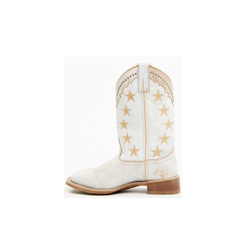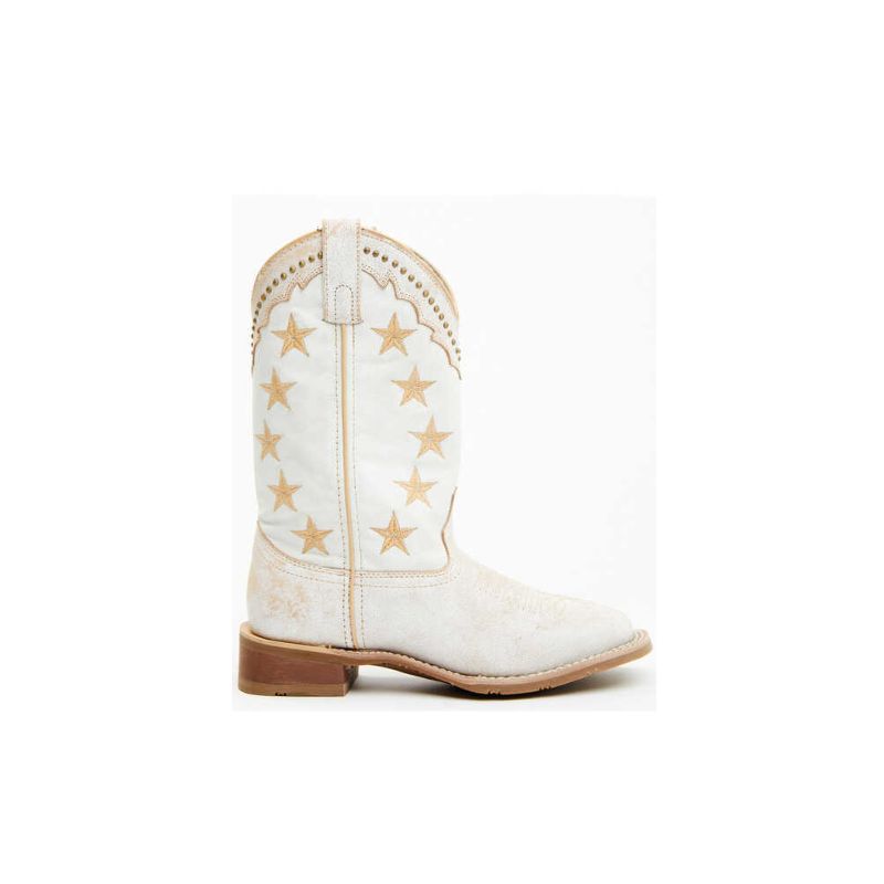 Distressed white with tan star embroidery on shaft