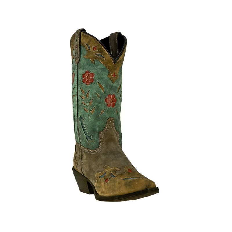 - QUICK SHIP | LAREDO WOMEN'S DARLA EMBROIDERED BURNISHED LEATHER WESTERN PERFORMANCE BOOTS - BROAD SQUARE TOE-LIGHT BLUE