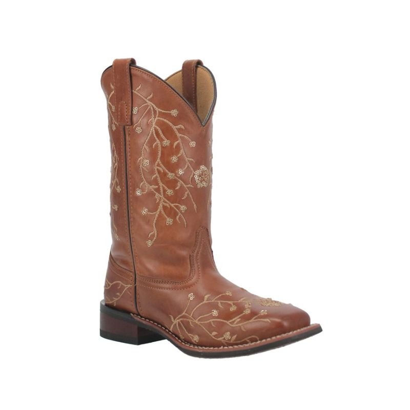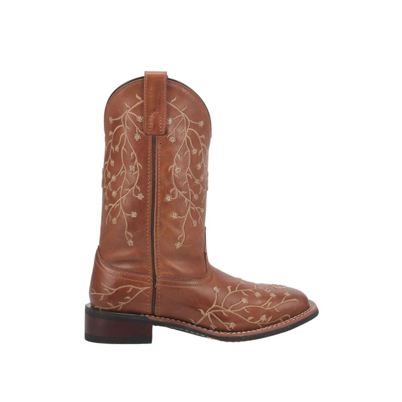 - QUICK SHIP | LAREDO WOMEN'S FLOWER INLAY WESTERN PERFORMANCE BOOTS - BROAD SQUARE TOE-TAN