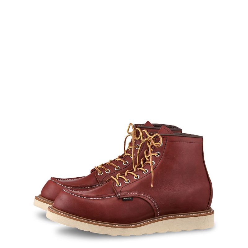 The 6-inch Classic Moc is synonymous with Red Wing Heritage. The boot's unmistakable moc toe and Traction Tred outsole form a timeless silhouette, now featuring a breathable, waterproof GORE-TEX bootie and all-new fully-waterproof Russet Taos Leather, ensuring that you're protected from the elements whether your commuting in the city or exploring elsewhere.