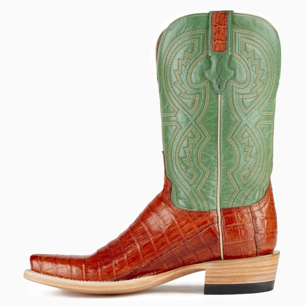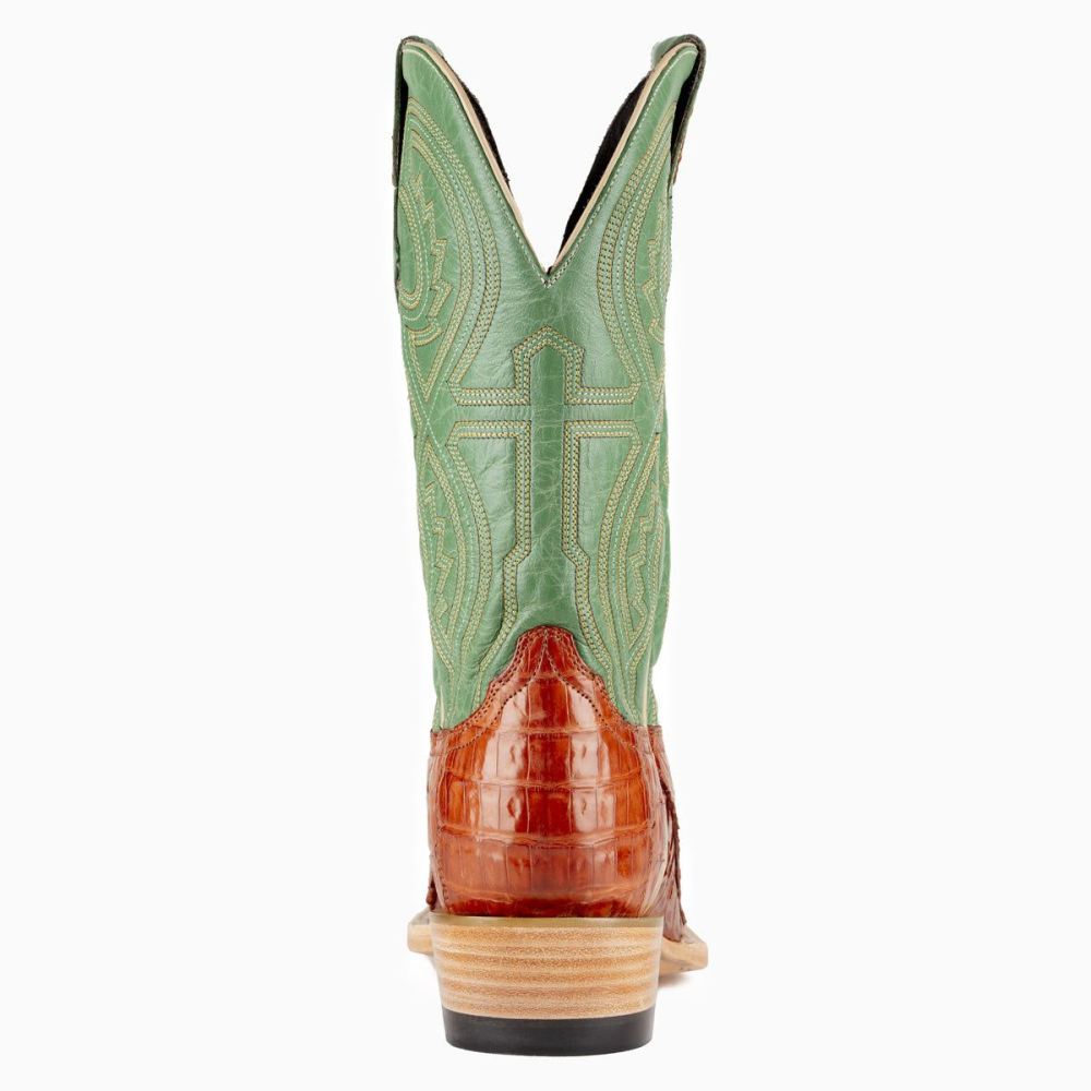 The Barnwood is available with a classy caiman cutter toe and a western heel. The shaft is green like timothy hay. With its double stitching, it is designed to last you from sun up to sun down all year round.
