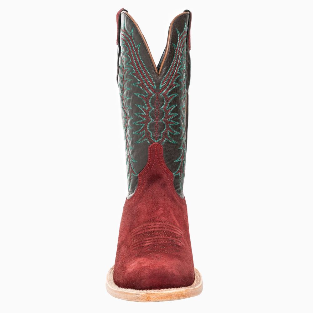 For the showstoppers, the Rough Out Dark Red is the cowboy boot for you. Create your own red carpet with the durable roughout boot made in jaw-dropping red. Smoke not included in the "nicotine" colored shaft. Available in a cutter toe with a western heel. Capture attention from riding rank ones to rendezvous.