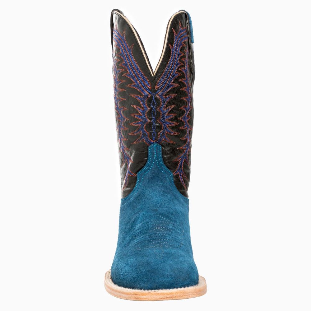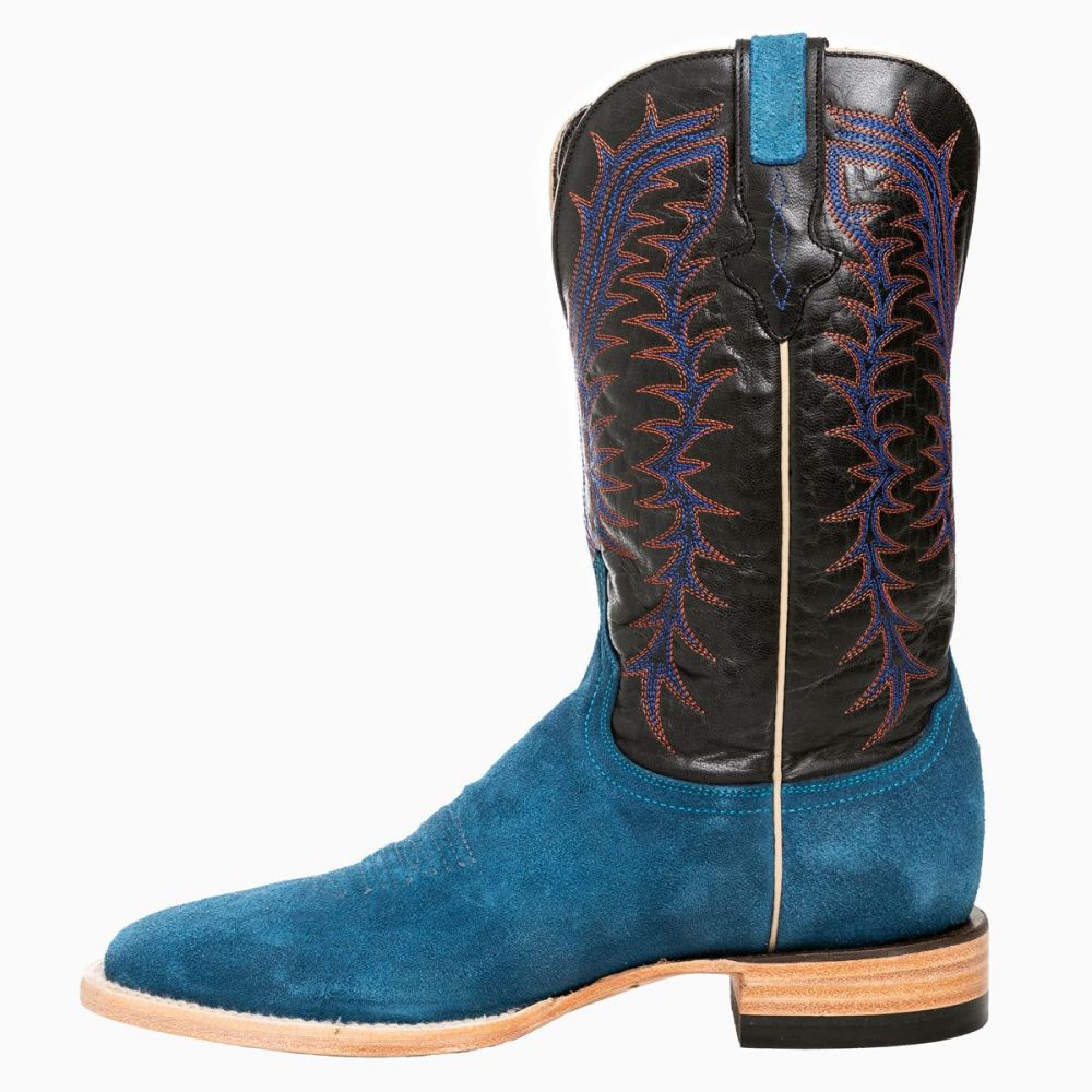 Stand out from the crowd with the Rough Out Navy. In true rodeo style, add extra punch to your look with the eye-catching cobalt blue roughout. Bring the thrill of a 90 point ride in every step you take. These will take you from spurring one in the neck to the celebration after. It is available in the square toe and stockman heel.
