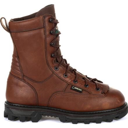 These Rocky boots are made with full-grain leather and tough nylon. They have genuine Goodyear welt construction and a storm welt for durability, shape-retention and a solid platform for hours of wear. A breathable GORE-TEX fabric membrane keeps moisture out and keeps your feet dry. Rocky added 600 grams of 3MThinsulateInsulation to the hunting boots to help keep your feet warm even on the coldest days.