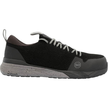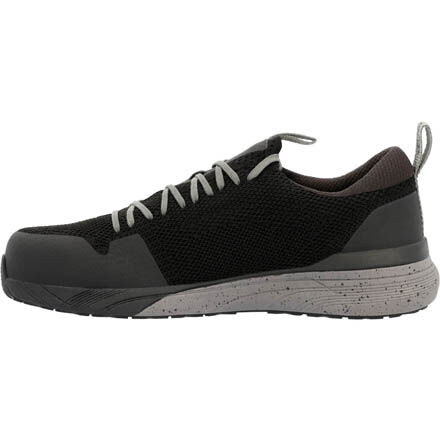 The men's Rocky Industrial Athletix Composite Toe work shoe challenges the work boot standard with a sleek, athletic look focused on comfort and use. The upper is made of high-performance abrasion resisting mesh with TPU overlay for added durability. Small reflective highlights offer visibility. Light and flexible cement construction is durable and comfortable. An EnergyBed footbed with memory foam and the Rocky Rebound EVA midsole absorbs shock so being on your feet all day won't be a problem.