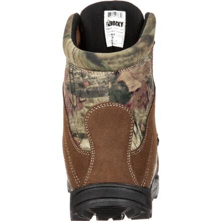 This Rocky kid's outdoor boot is styled to resemble and be just as durable as an adult's hunting boot. The upper has been crafted from a combination of brown split-suede leather, extraordinarily-strong nylon (900 Denier) and it has a Mossy Oak Infinitycamouflage print so that they can blend in with the woods. The kid's boot also has a lace-up design on its upper, this will make their feet feel secure within the footwear and allow them to adjust the fit.