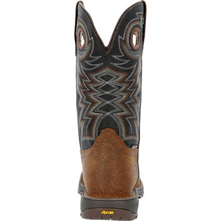 The Rocky Legacy 32 Steel Toe takes a classic work western silhouette and adds the latest in comfort and technology. These eleven-inch brown work boots are designed to offer all-day comfort, safety, and stability. With a stitch-out construction, an oil and slip resisting Nicotine Proprietary Vibram rubber outsole with a cushioned EVA midsole, and a fiberglass shank, these boots are built to last. Take on any terrain with waterproof full-grain SPR leather and Rocky's VP Waterproof technology that keeps your feet dry without trapping perspiration in. Getting into these boots is easier than ever with Rocky's Expansion Fit Seam that stretches when putting the boot on and then returns to its original shape. These boots feature a square steel toe to protect you all day. If you're looking for a work wellington boot that looks as good as it feels and offers safety where you need it the most, buy the Rocky Legacy 32 Steel Toe 11" work western boot.