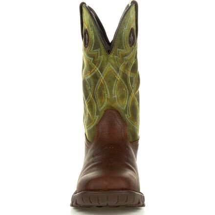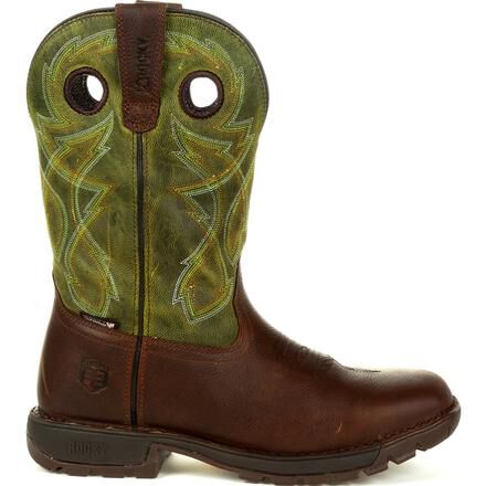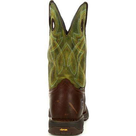 The Rocky Legacy 32 takes a classic work western silhouette and adds the latest in comfort and technology. These eleven-inch brown and green work wellingtons are designed to offer all day comfort, safety, and stability. With a stitch out construction, an oil and slip resisting Proprietary Vibram rubber outsole with a cushioned EVA midsole, and a fiberglass shank, these boots are built to last. Take on any terrain with waterproof full grain SPR leather and Rocky's VP Waterproof technology that keeps your feet dry without trapping perspiration in. Getting into these boots is easier than ever with Rocky's Expansion Fit Seam that stretches when putting the boot on and then returns to its original shape. If you're looking for a work wellington boot that looks as good as it feels and offers safety where you need it the most, get the Rocky Legacy 32.
