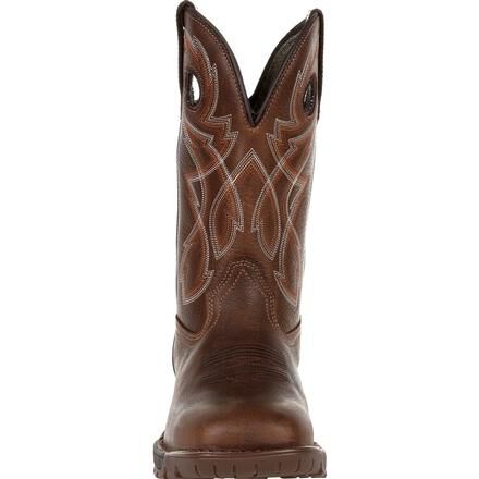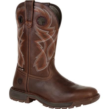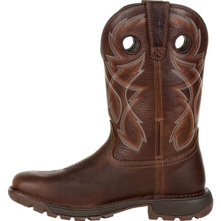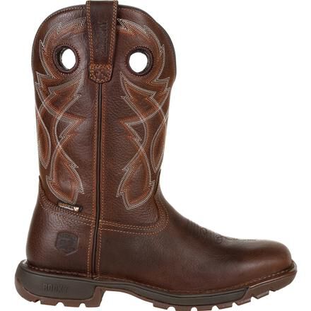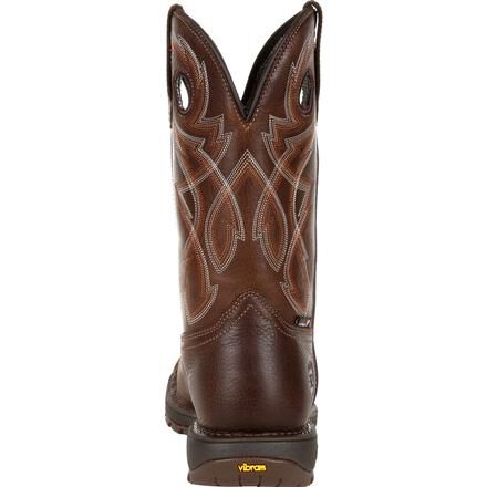 The Rocky Legacy 32 takes a classic work western silhouette and adds the latest in comfort and technology. These eleven-inch brown work wellingtons are designed to offer all day comfort, safety, and stability. With a stitch out construction, an oil and slip resisting Proprietary Vibram rubber outsole with a cushioned EVA midsole, and a fiberglass shank, these boots are built to last. Take on any terrain with waterproof full grain leather and Rocky's VP Waterproof technology that keeps your feet dry without trapping perspiration in. Getting into these boots is easier than ever with Rocky's Expansion Fit Seam that stretches when putting the boot on and then returns to its original shape. If you're looking for a work wellington boot that looks as good as it feels and offers safety where you need it the most, get the Rocky Legacy 32.