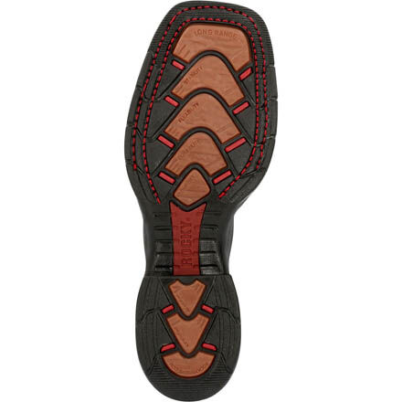 The Rocky Long Range Waterproof 11" western work boot combines all our favorite features of a work boot with the classic look of a western boot. The Long Range X Outsole System of ten peak performances prioritizes your stability, safety, and comfort in every step, with the added comfort and safety of full-grain leather and oil and slip resisting outsoles.
