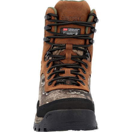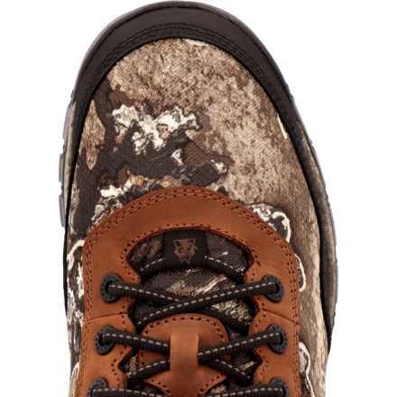 This 8 inch boot features the Realtree ExcapeCamo with a light and flexible cement construction. Your feet will stay warm and dry all day long with the waterproof Full Grain Leather with Cordura, 1 Year Vapor Pass Breathable Recycled Membrane Waterproofing and the 400 Grams of 3MThinsulateUltra Insulation. Built with Rocky Rebound Footbed and Aggressive All-Terrain Lynx Outsole the Rocky Lynx Waterproof 400G Insulated Boot will keep your feet comfortable all day long.