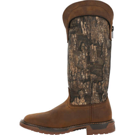 Our Original Ride FLX, known for being rugged, lightweight, and comfortable, meets waterproof full-grain SPR leather and 16" of Realtree Timbersnake guard material for superior protection. The Original Ride FLX Waterproof Snake boot has a YKK back zipper and a unique finger grip pull-on feature that makes this boot easy to put on and take off.