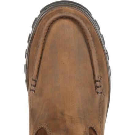 Just pull on this men's boot and it serves all your needs. You don't have to change footwear for your next outing. Wear this waterproof moc toe shoe for whatever comes your way. Be comfortable and casual, yet still ready for rugged terrain, mud and water. This moc toe boot does in all! Get the Rocky Outback!