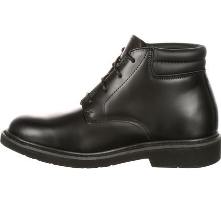 If your job requires you to wear a dress boot for public service, you don't want to settle for just any black dress boot. If you prefer the look and feel of genuine full-grain leather, and you want a men's boot that's comfortable, and can be polished, you've found your footwear. It's the Rocky Polishable Dress Leather Chukka.