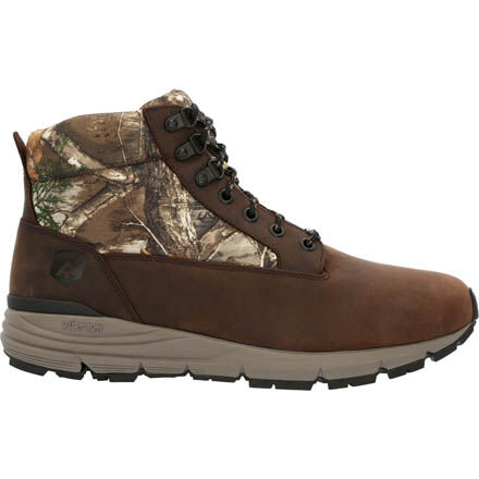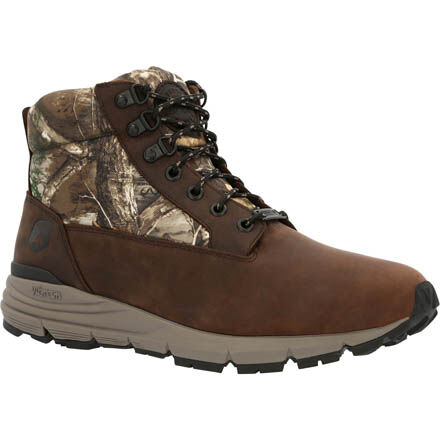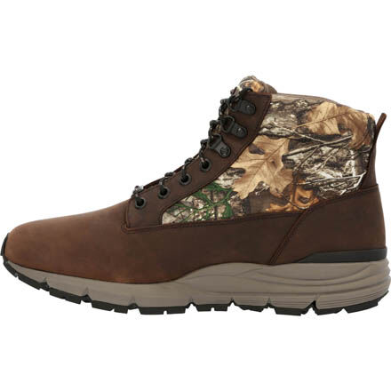 Experience all day comfort with a light and flexible cement construction, a fiberglass shank for stability and support, an EVA midsole, and an EnergyBed XLX footbed. Don't let weather slow you down. These shoes are constructed with waterproof full grain leather with 600 denier Cordura and Rocky's VP Waterproof technology that keeps your feet dry without trapping perspiration in. This pair also features Realtree Edge camo.
