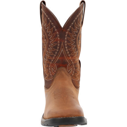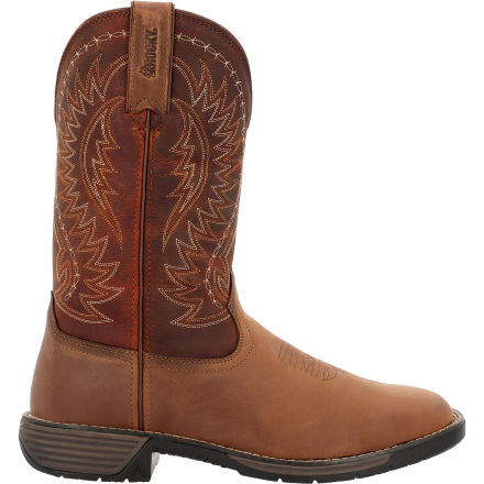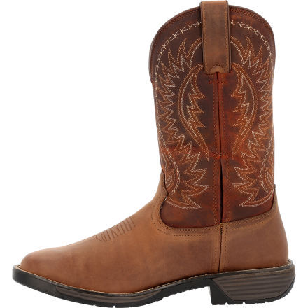 As soon as you pull on this men's western boot, you'll like the soft leather lining. The polyurethane-made Ride footbed is extremely comfortable, plus it's removable so you can always add in another insole. To ensure that your feet remain dry and comfortable while you're wearing this comfortable cowboy boot, this Western is built with Rocky Waterproof Construction.