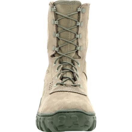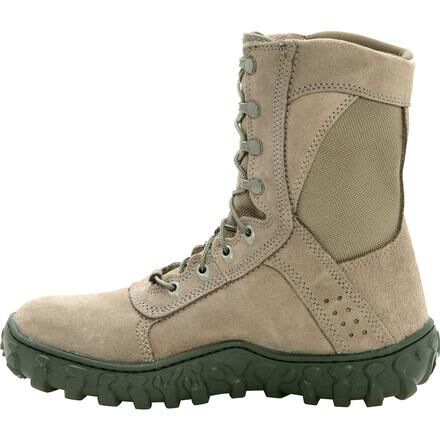 Get combat ready with the Rocky S2V 8-inch Steel Toe Military Boot! Built for quick maneuvers and fast-paced action, Rocky S2V boots are the choice for die-hard military professionals. Featuring flash-resistant materials to protect your feet from quick flashes. The Rocky S2V also has triple-stitched uppers and Vibram wrap-around outsoles. And don't let wet conditions bog you down. Inner drainage ports allow you to go amphibious by pushing water out of the boots so you can move full speed ahead.