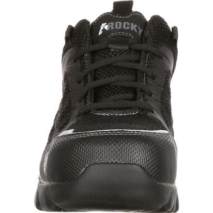 The Rocky TrailBlade Composite Toe Waterproof Athletic Work Shoe empowers its wearer with the qualities and technologies that keep you confident and comfortable all day. This men's black non-metallic shoe provides you the support to work hard and play hard.