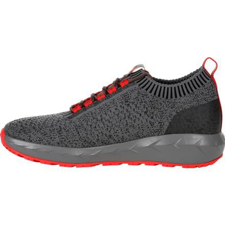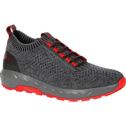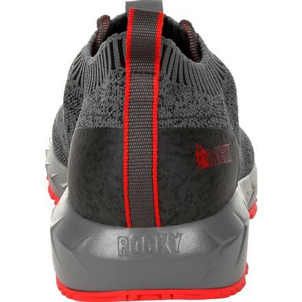 Introducing the Women's Rocky LX Athletic Work Shoe with WorkKnit technology. This ladies scarlet and gray slip-on work shoe is perfect for the on-the-go worker that wants the look and feel of their favorite trainers and the safety of a work shoe. With foot-forming, breathable knit technology and our Rebound midsole cushioning, this shoe just may make you forget that you're on the clock.