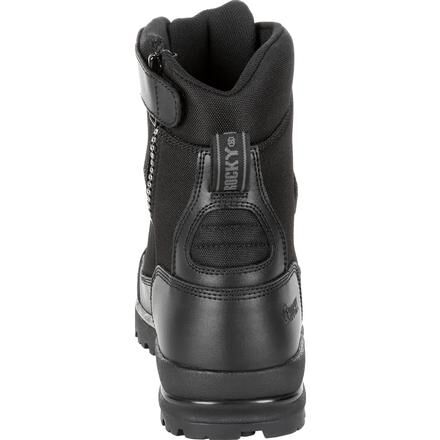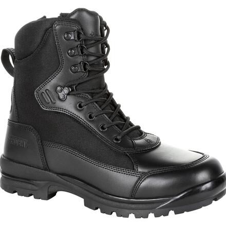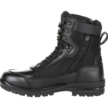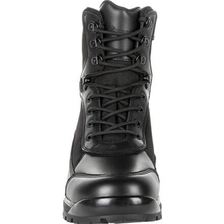 A Website Exclusive! The Rocky X-Flex is a black public service boot that offers durability and comfort on the job.
