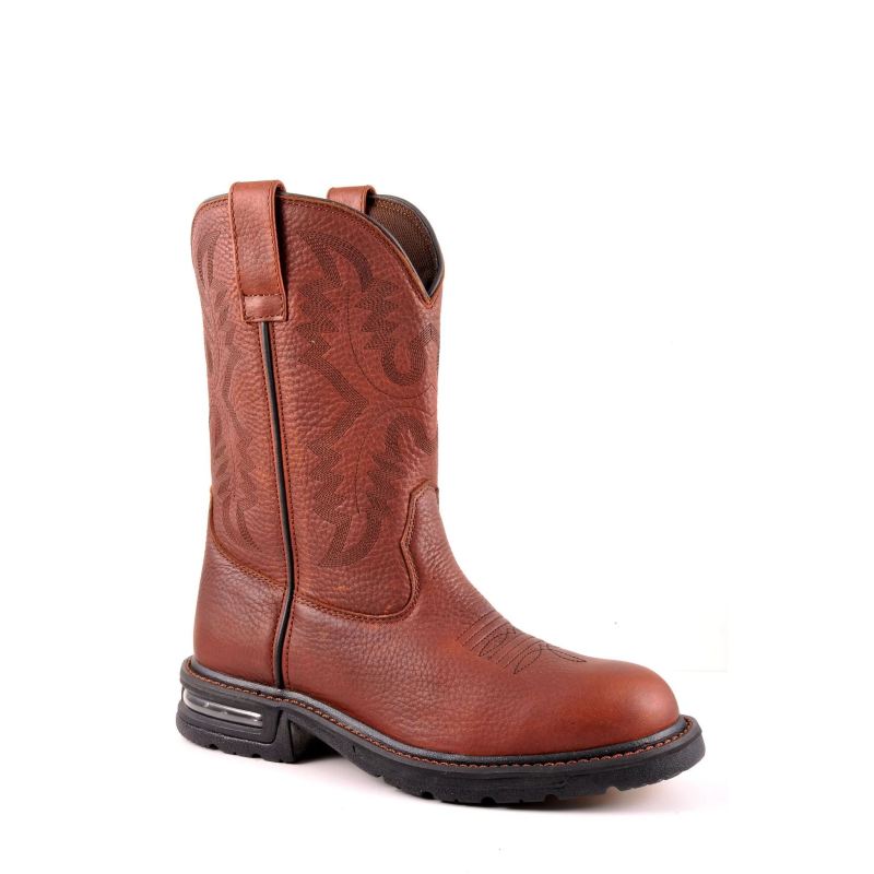 - ROPER | MEN'S BURNISHED BROWN LEATHER VAMP SQUARE TOE BOOT WITH CRACKLE WHITE LEATHER SHAFT-BROWN | STYLISH OUTLET