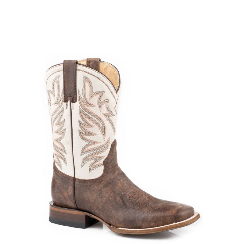 - ROPER | MEN'S TAN LEATHER VAMP SHAFT SQUARE TOE BOOT WITH EMBROIDERED SHAFT-CONCEALED CARRY SYSTEM-TAN | STYLISH OUTLET