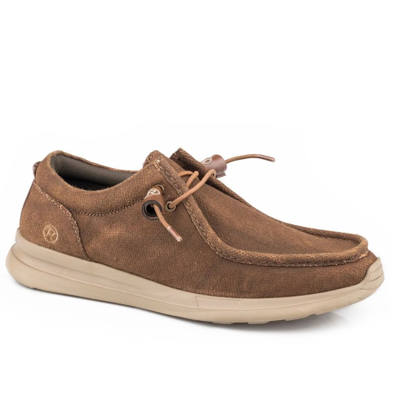 - ROPER | MEN'S DRIVING MOC CHOCOLATE BROWN VINTAGE FABRIC WITH FABRIC WRAPPED SOLE-BROWN | STYLISH OUTLET