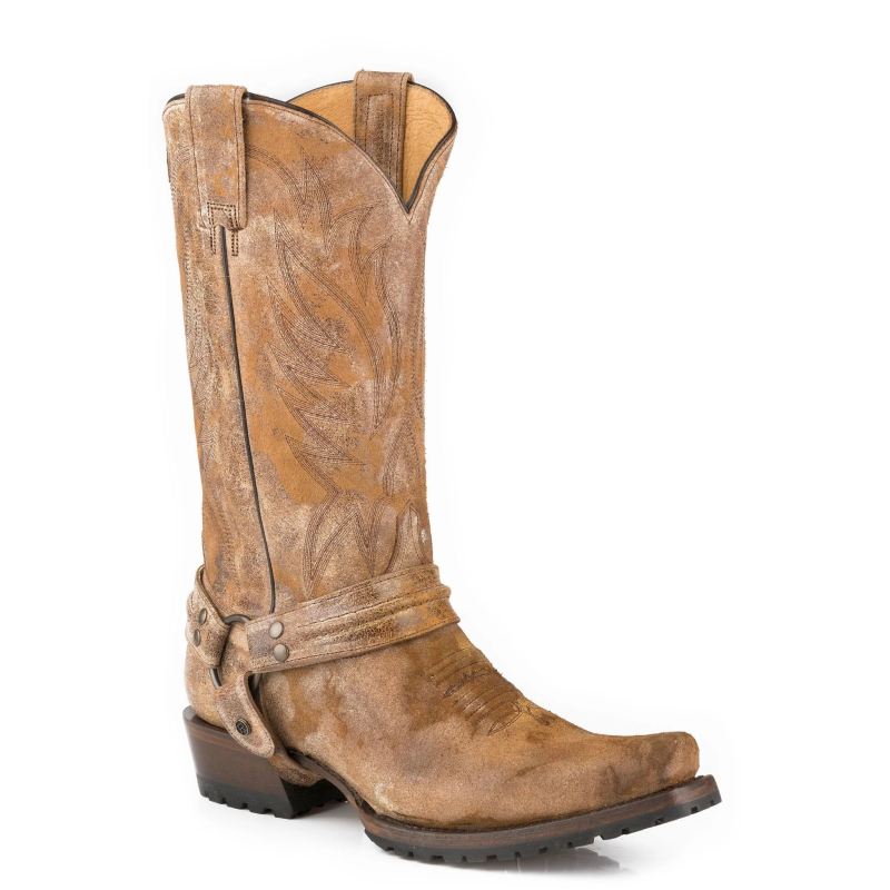 - ROPER | MEN'S VINTAGE BLACK EMBOSSED CAIMAN VAMP BIKER TOE WITH HARNESS-BROWN | STYLISH OUTLET