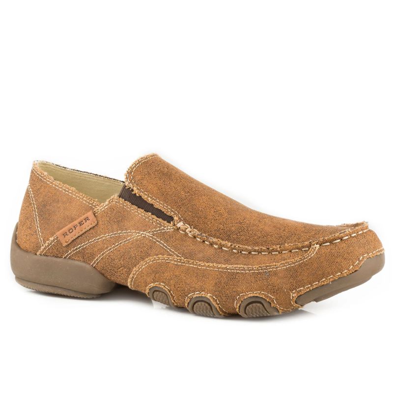 - ROPER | MEN'S OPANKA CONSTRUCTION COMFORT SLIP ON DARK BROWN VINTAGE NUBUCK LEATHER-BROWN | STYLISH OUTLET