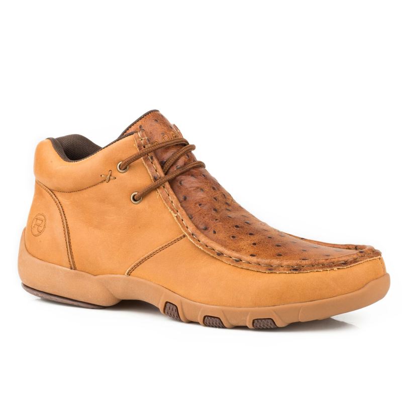 - ROPER | MEN'S PERFORMANCE SLIP ON TAN FAUX LEATHER EMBOSSED OSTRICH-TAN | STYLISH OUTLET