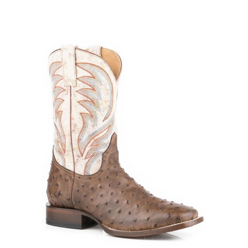 - ROPER | MEN'S EXOTIC LEATHER COWBOY BOOT BROWN OSTRICH VAMP WITH WAXY BROWN STITCHED UPPER-BROWN | STYLISH OUTLET