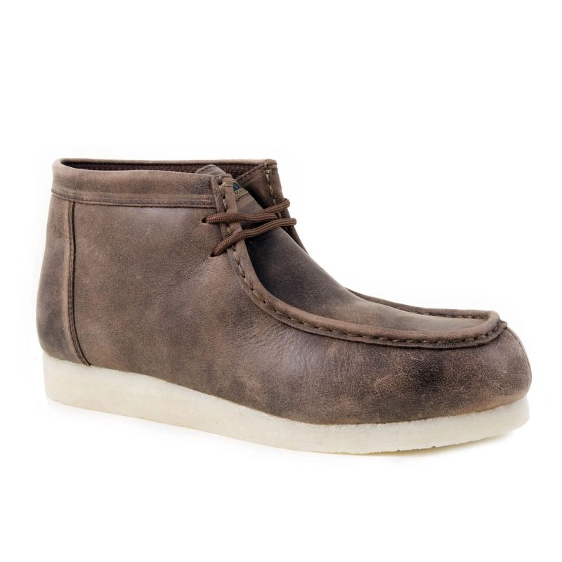 - ROPER | MEN'S VINTAGE BROWN LEATHER CHUKKA WITH TWO EYELETS ELASTIC LACES-BROWN | STYLISH OUTLET