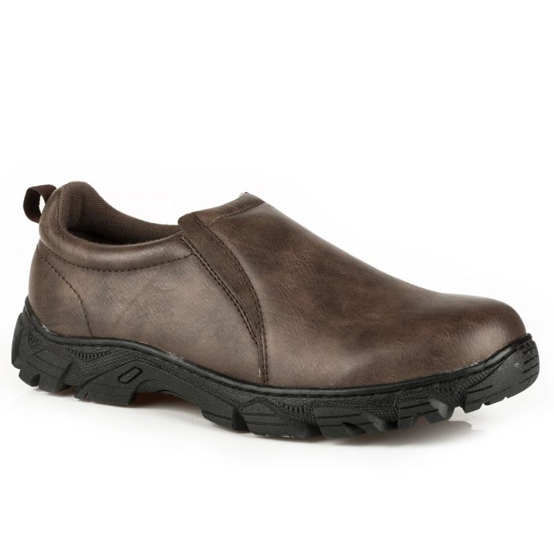 - ROPER | MEN'S PERFORMANCE SLIP ON BLACK FAUX LEATHER EMBOSSED OSTRICH-BLACK | STYLISH OUTLET