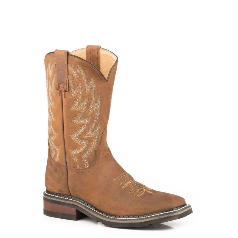 - ROPER | MEN'S COWBOY BOOT FAUX LEATHER BROWN VAMP WITH TAN STITCHED UPPER-BROWN | STYLISH OUTLET
