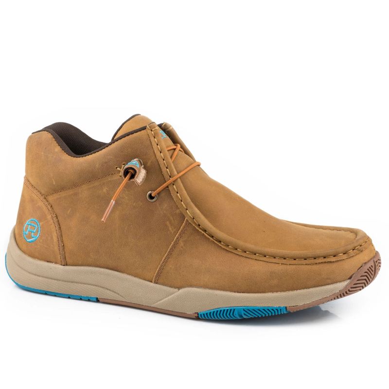 - ROPER | MEN'S VINTAGE BROWN LEATHER CHUKKA WITH TWO EYELETS ELASTIC LACES-BROWN | STYLISH OUTLET