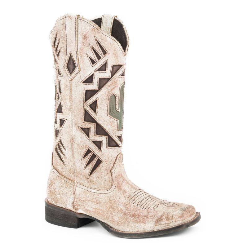 - ROPER | WOMEN'S COWBOY BOOT BROWN FAUX LEATHER WITH METALLIC SILVER UNDERLAY-BROWN | STYLISH OUTLET