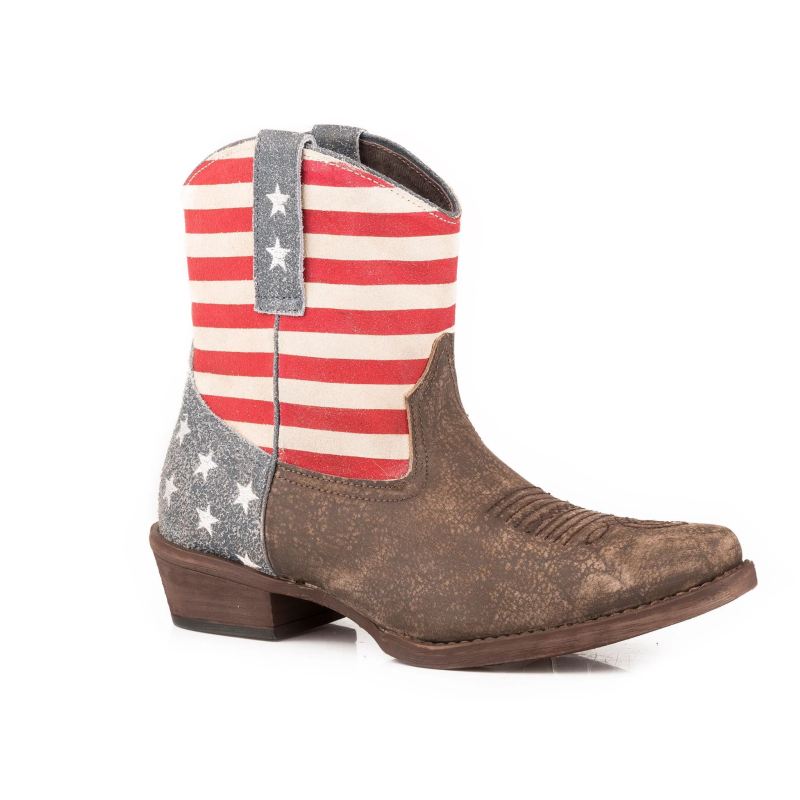 - ROPER | WOMEN'S BROWN VAMP WITH TOOLED SHAFT LEATHER SHORTY-BROWN | STYLISH OUTLET