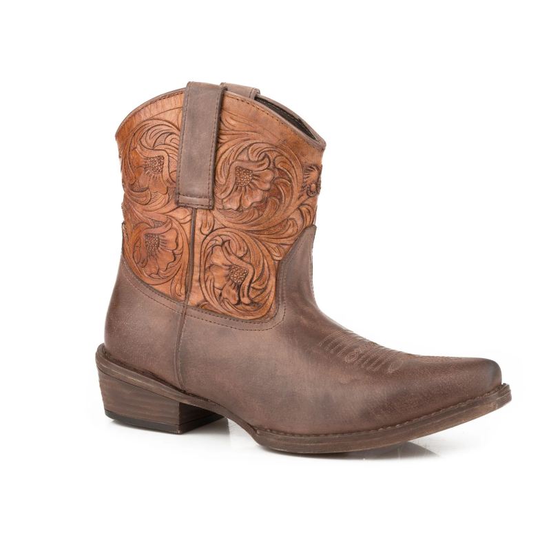 - ROPER | WOMEN'S FASHION COWBOY BOOT TAN ANTIQUED FAUX LEATHER WITH SCROLL EMBOIDERY-TAN | STYLISH OUTLET