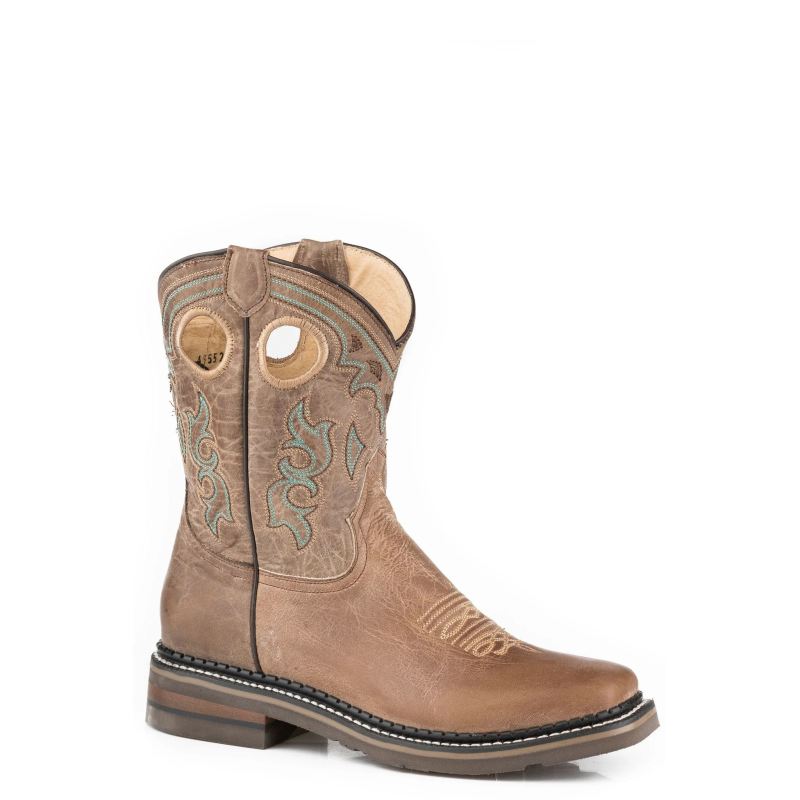 - ROPER | WOMEN'S ROUND TOE TAN BURNISHED LEATHER SHORTY-TAN | STYLISH OUTLET