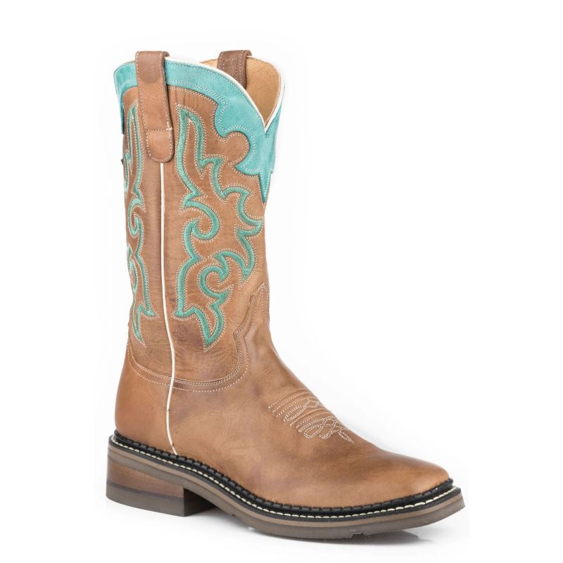 - ROPER | WOMEN'S FASHION COWBOY BOOT TAN FAUX LEATHER WITH GLITTER UNDERLAY-BROWN | STYLISH OUTLET