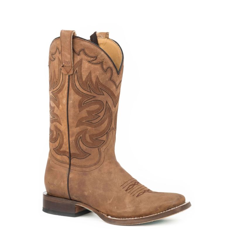 - ROPER | WOMEN'S WIDE CALF LEATHER COWBOY BOOT WAXY BROWN WITH EMBROIDERED ARROW UNDERLAY DESIGN-BROWN | STYLISH OUTLET
