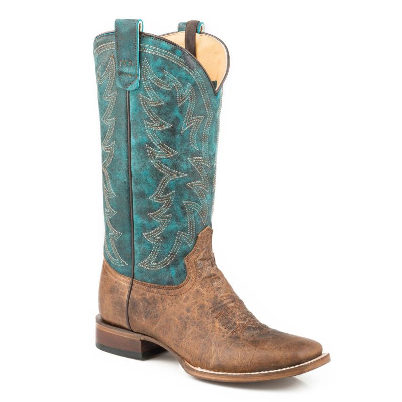 - ROPER | WOMEN'S TAN LEATHER VAMP SHAFT BOOT WITH AZTEC EMBROIDERY ON SHAFT-BROWN | STYLISH OUTLET