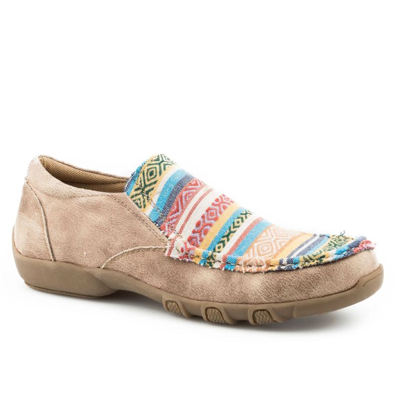 - ROPER | WOMEN'S VINTAGE TAN VAMP FLEXTRA BOOT WITH VINTAGE WHITE ARROW EMBROIDERED LEATHER SHAFT-TAN | STYLISH OUTLET