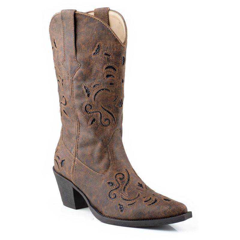- ROPER | WOMEN'S COGNAC FAUX LEATHER SQUARE TOE-BROWN | STYLISH OUTLET